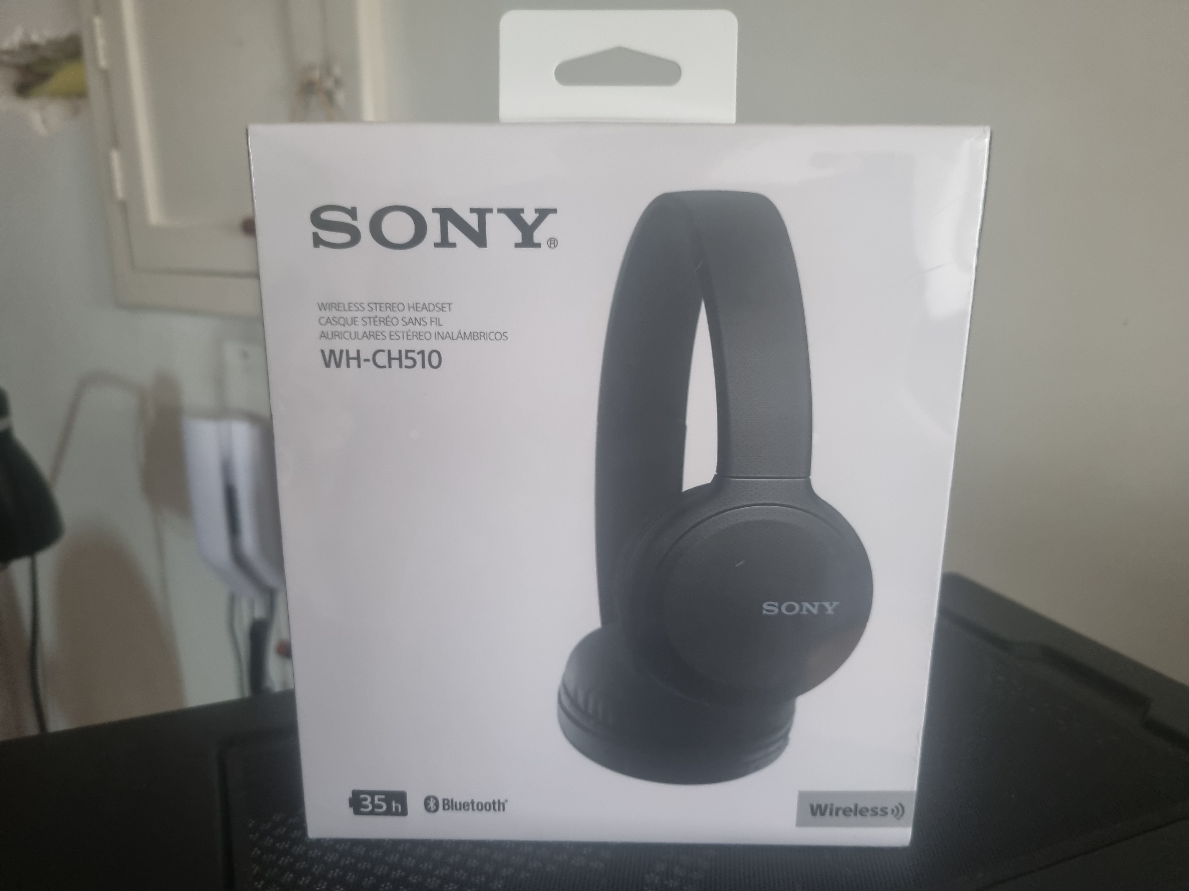 The box is pretty much standard cardboard, displaying some of the product's specifications, like Bluetooth 5.0, the 35 hour battery duration, flat folding and mic/controls. And it also comes with a USB cable Type-C for recharging (no fast charge though).